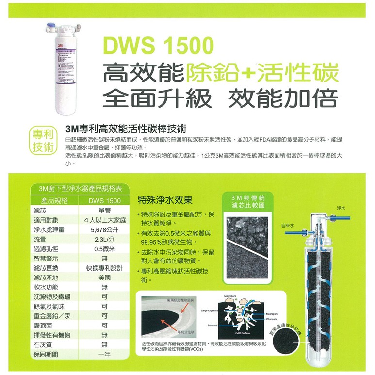 3M DWS1500|FM1500除鉛型濾心|0.5微米《NSF 42/53 認證》