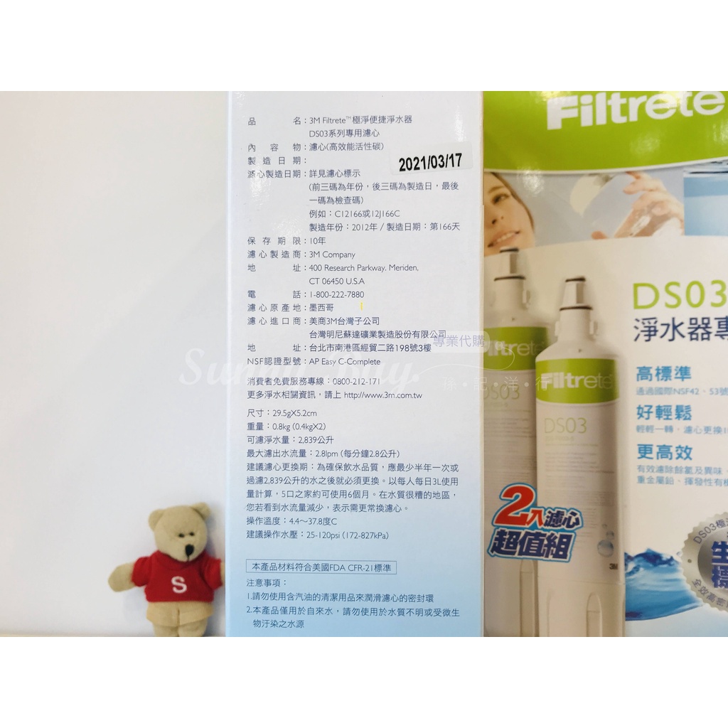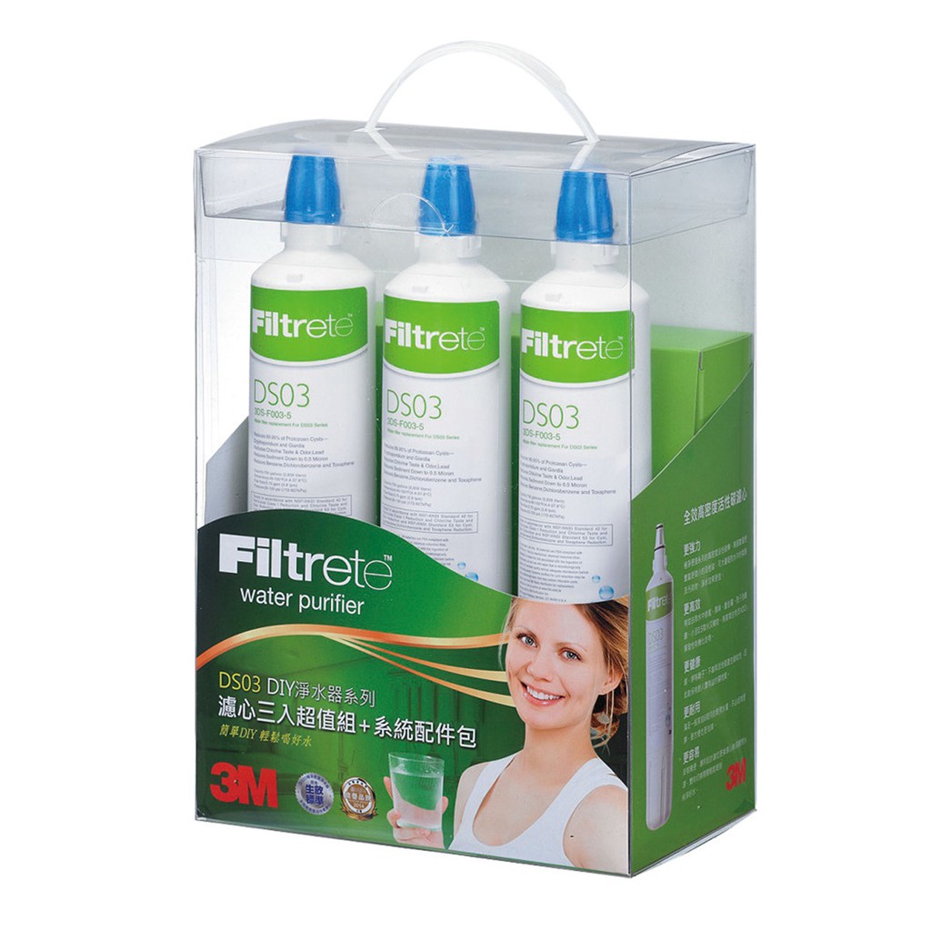 3M Filtrete 極淨便捷淨水器系列 DS03 濾心三入+系統配件 專用濾心2入組【Suny Buy】