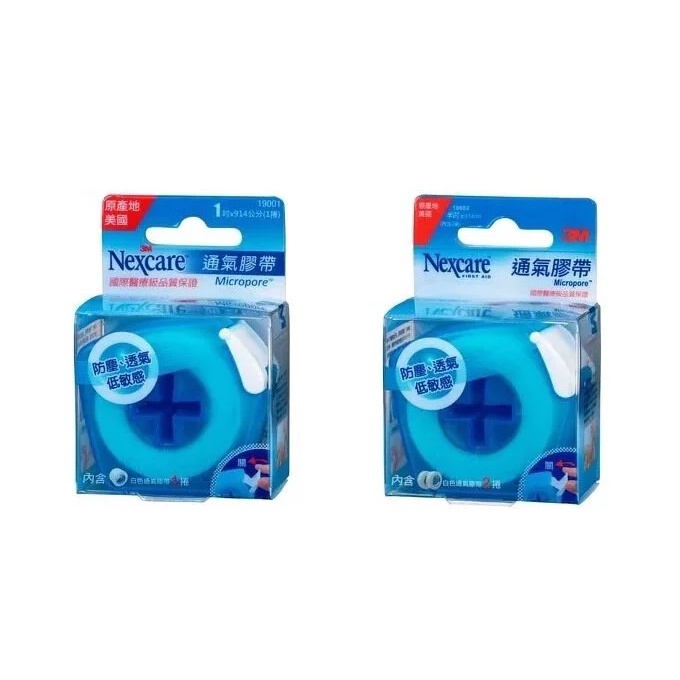 3M Nexcare白色通氣膠帶 (含十字膠台) 半吋 兩捲裝/1吋 一捲裝 19001 19002 透氣膠帶