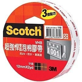3M Scotch 118超強悍雙面泡棉膠帶12mm 24mm 18mm3倍黏力 防水 耐高溫 抗UV 居家叔叔 附發票