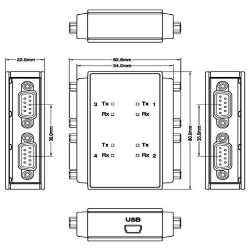 4埠 USB to RS232 工規型 轉換器(USI-140F)SUNBOX