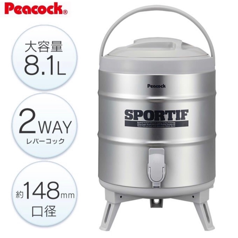 ☆CP籽☆日本製 Peacock 孔雀魔法瓶 8.1L 不鏽鋼保溫桶 保冷保溫桶 茶桶 露營桶 INS-80K