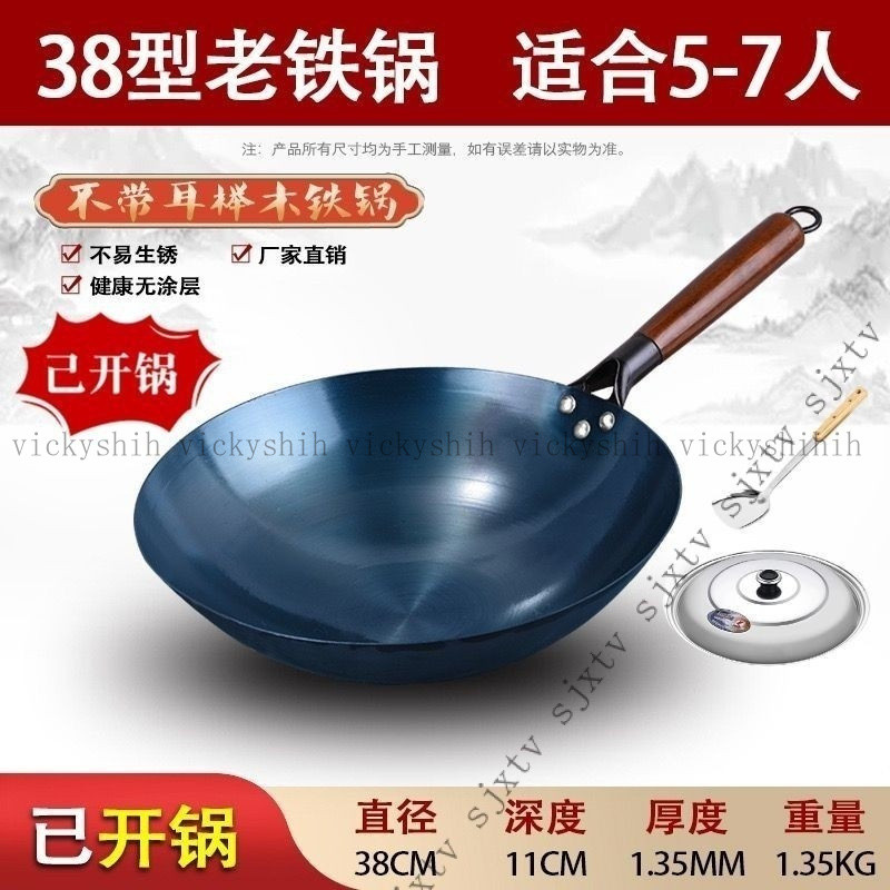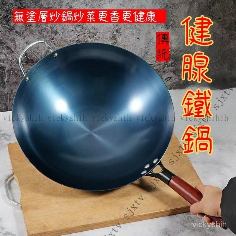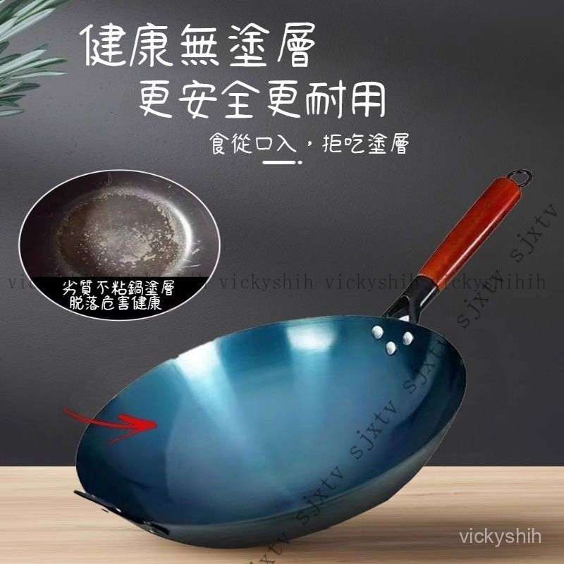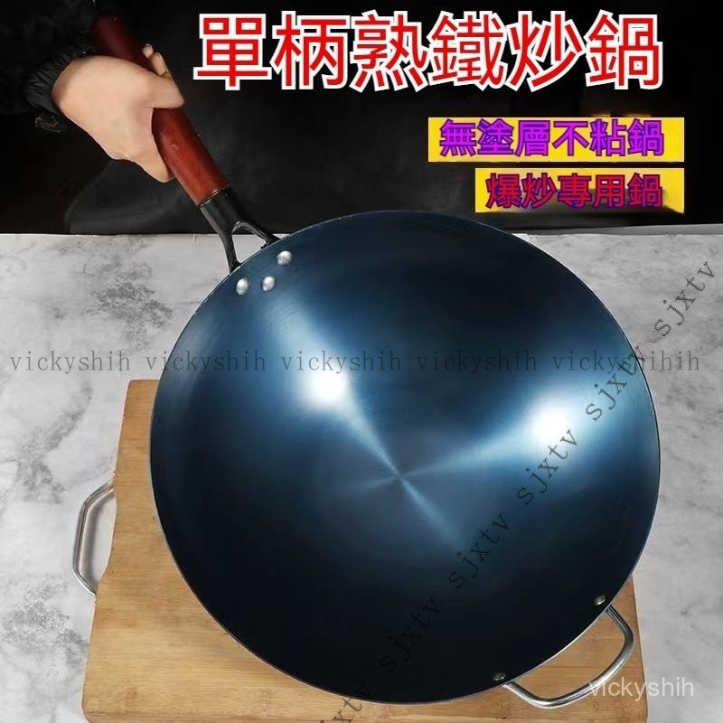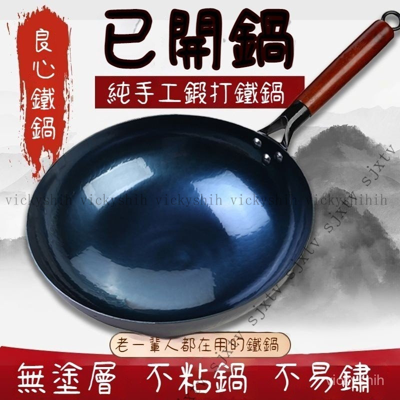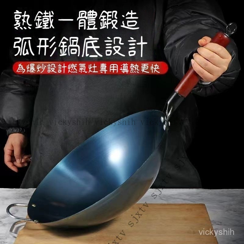 【優質精選無塗層】章丘鐵鍋 炒鍋 老式鐵鍋 炒菜鍋 無塗層 老式鍛打 鐵鍋傢用 煤氣竈廚師專用 熟鐵鍋已開鍋 GB93