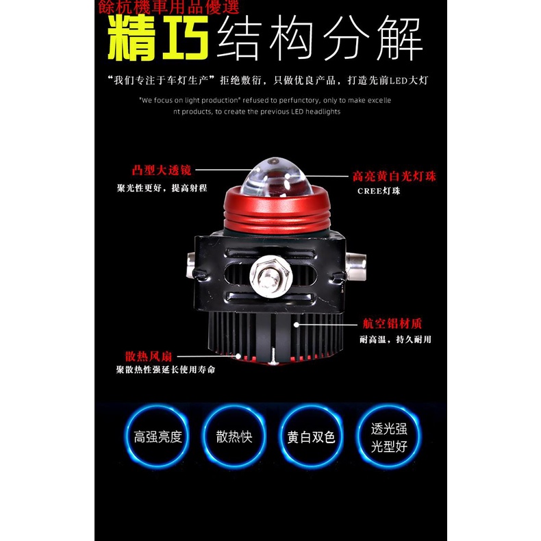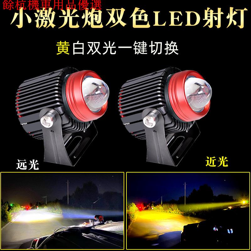💕現貨💕機車 汽車 雙色魚眼大燈 迷你外掛汽車小鋼砲射燈 激光霧燈 白黃光 雙色