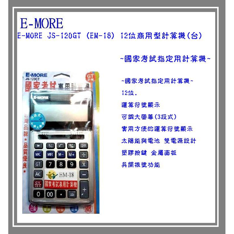 E-MORE JS-120GT (EM-18) 12位商用型計算機(台)~ 國家考試指定用計算機~