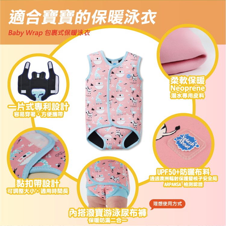 《Splash About 潑寶》BabyWrap 包裹式保暖泳衣 -粉紅動物園