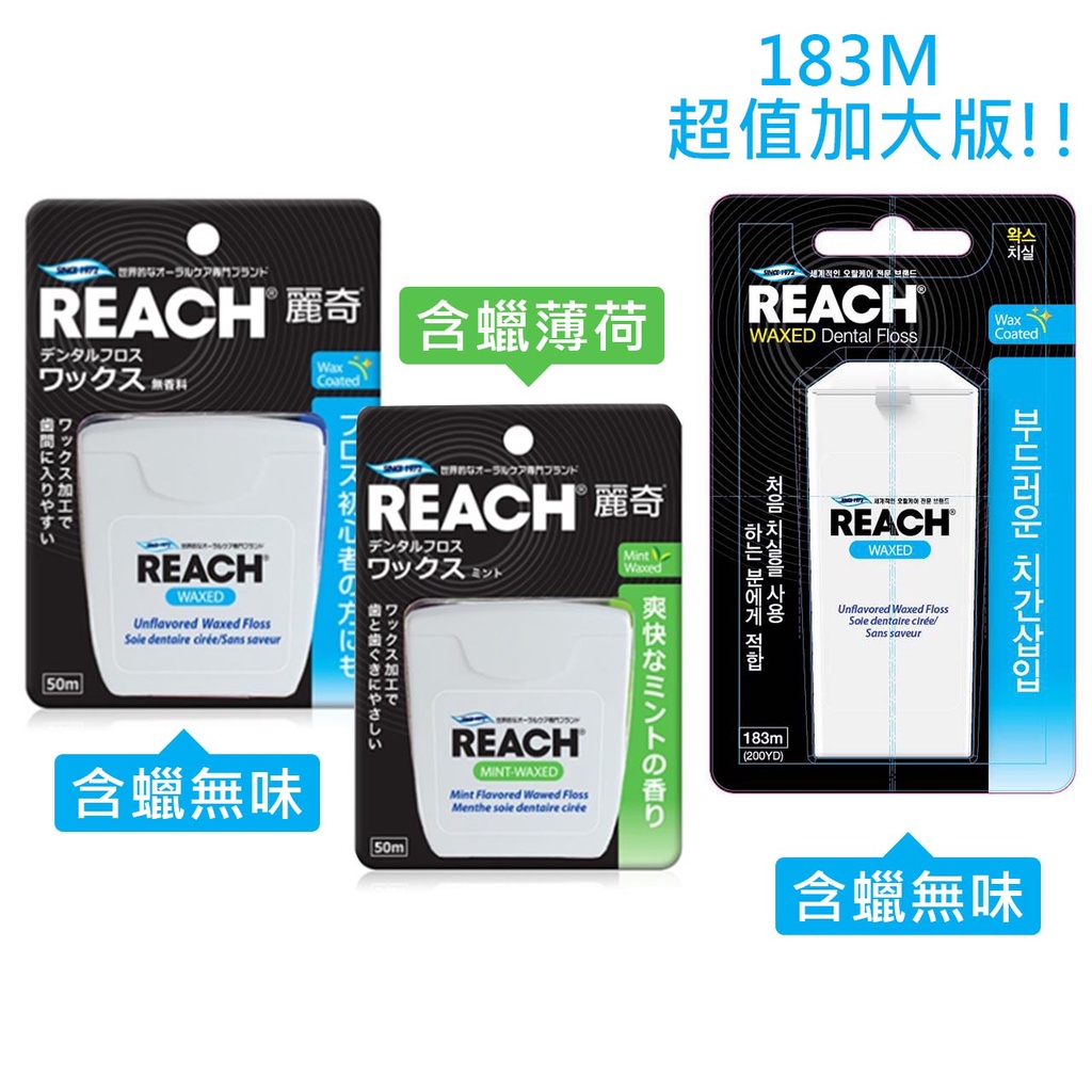 【台灣現貨】REACH 麗奇 潔牙線 牙線 含蠟無味 含蠟薄荷 50M 183M