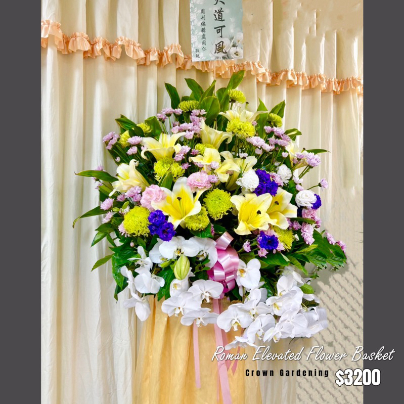 [王冠園藝]台中市立殯儀館 崇德館 東海火化場 高架花籃 鮮花籃 告別式 公祭 喪禮 弔唁 追悼 靈堂