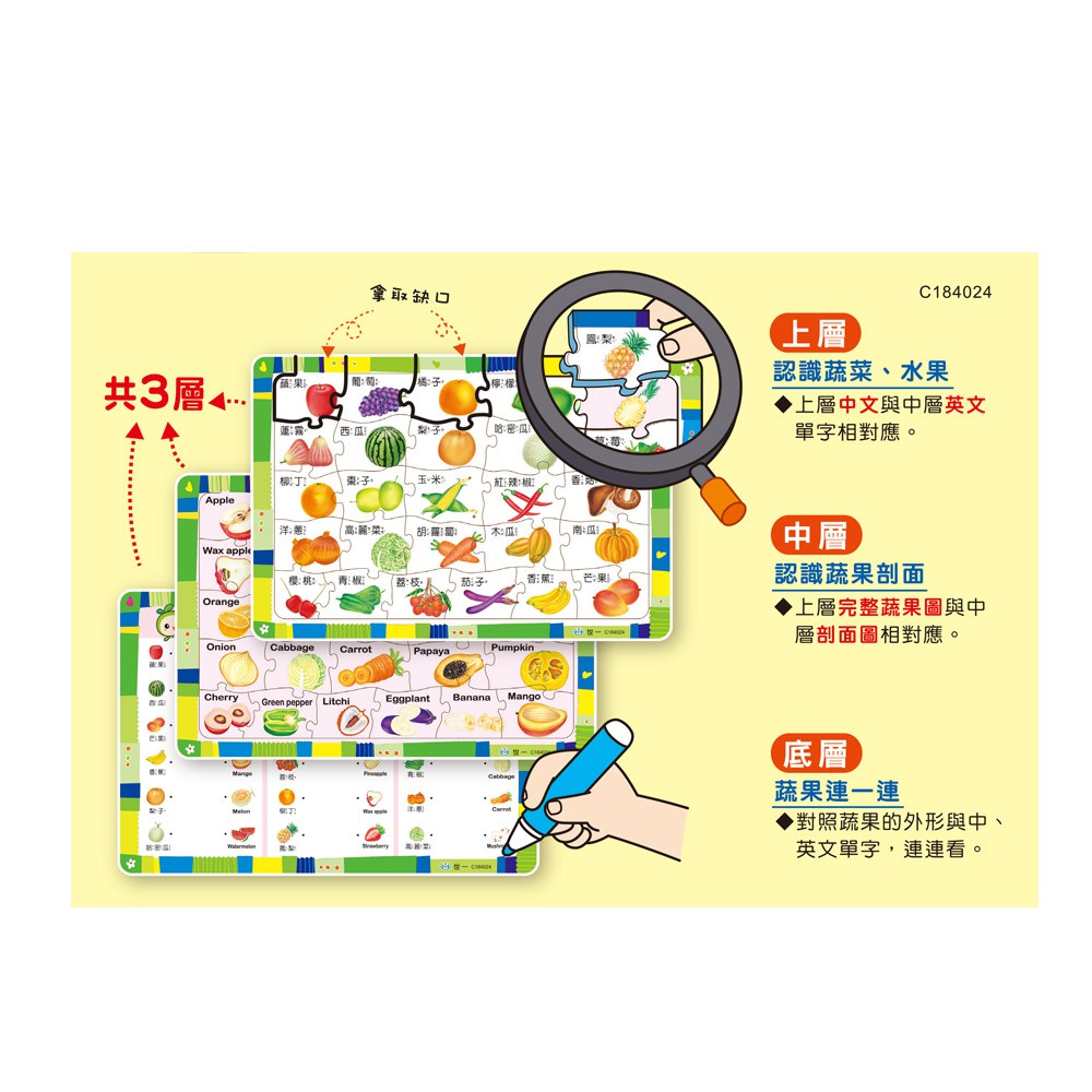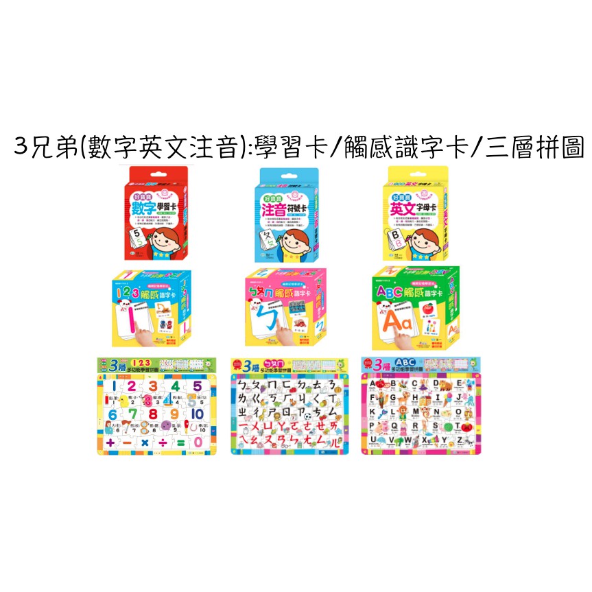 【抬頭有書】世一 數字123 注音ㄅㄆㄇ 英文ABC:好寶寶重複寫學習卡/觸感識字卡/蔬菜水果 三層學習拼圖
