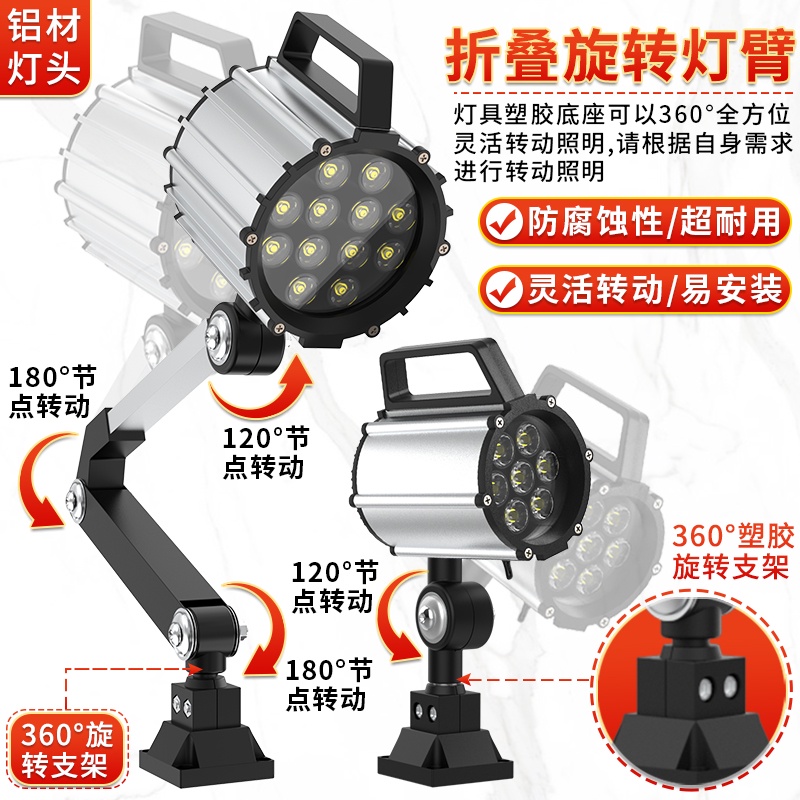 限時下殺 現貨即發 led機床工作燈24v220v36V防水防爆沖床檯燈超亮長臂火花機車床燈