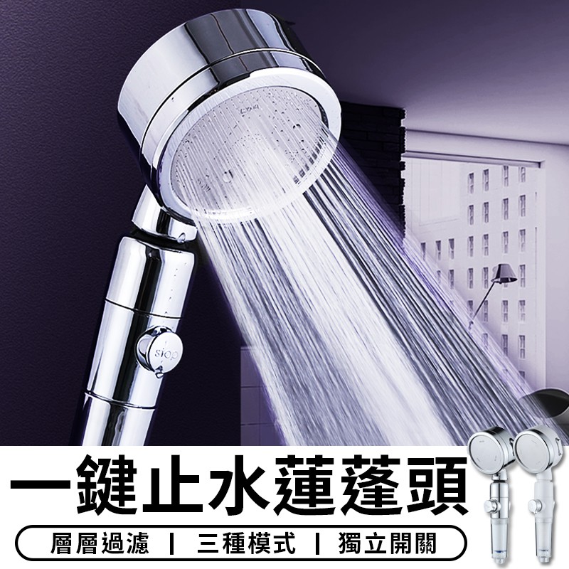 【台灣現貨 A022】 一鍵止水 過濾蓮蓬頭 晶鑽電鍍 德國工藝 加壓省水 耐摔恆溫 三段變速靜 蓮蓬頭架 蓮蓬頭