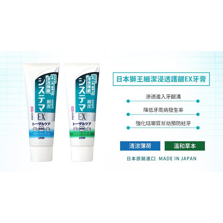 日本 獅王 細潔浸透 護齦EX牙膏 溫和草本 130g 牙膏