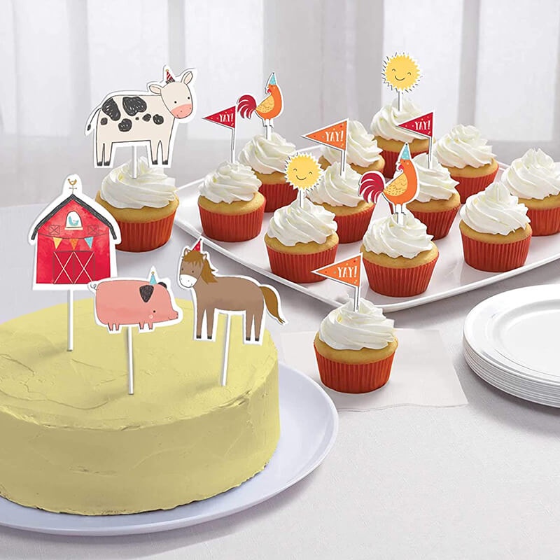 派對城 現貨【蛋糕裝飾12入-動物農場】 歐美派對 蛋糕裝飾 叢林動物 派對佈置 拍攝道具 烘焙裝飾