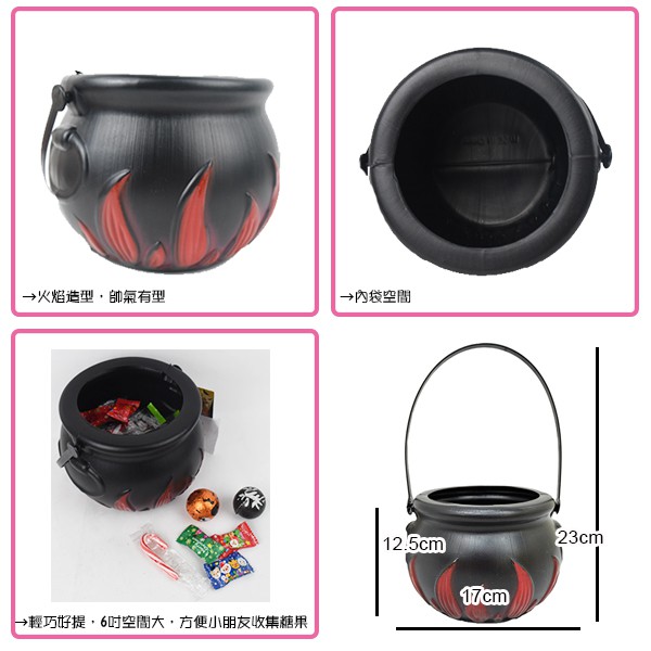 6吋萬聖火爐提桶,南瓜桶/萬聖節道具/提籃/糖果袋/巫婆桶/糖果籃/萬聖節/萬聖節擺飾,節慶王【W271546】