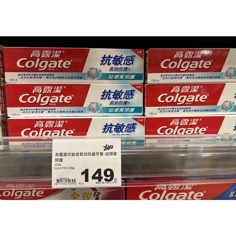 全新 限時特價 Colgate 高露潔 抗敏感牙膏 強護琺瑯質 清涼薄荷 牙齦護理 潔淨亮白 120g