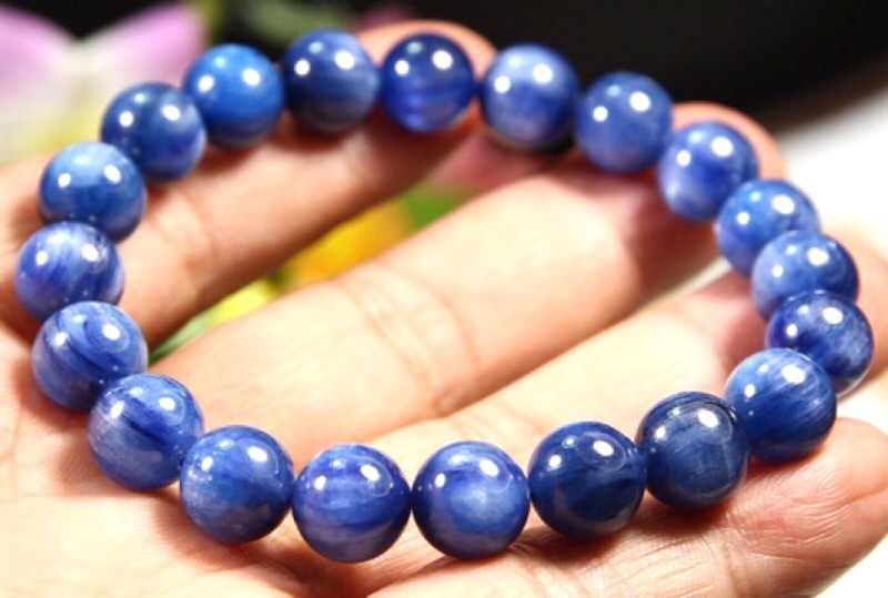 6173 頂級天然無燒無染藍晶石超閃貓眼藍暈手珠10 mm籃色藍色藍晶石手鍊手環手串珠串手珠唸珠大串圓珠禮物