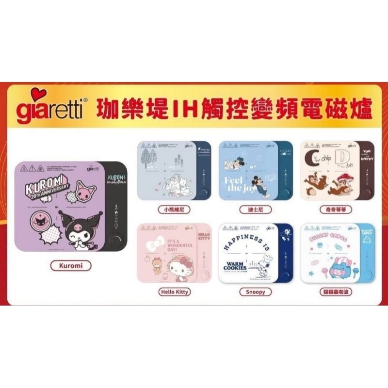 7-11開運福袋電磁爐-Giaretti珈樂提-IH觸控變頻電磁爐-Hello Kitty、 史努比、庫洛米