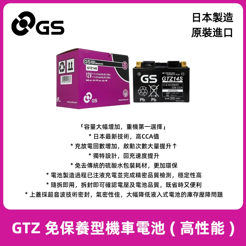 『✨韋任電池🔋』GS杰士 統力 GTZ14S 高性能 重機專用電瓶 鉛酸電池 日本製造