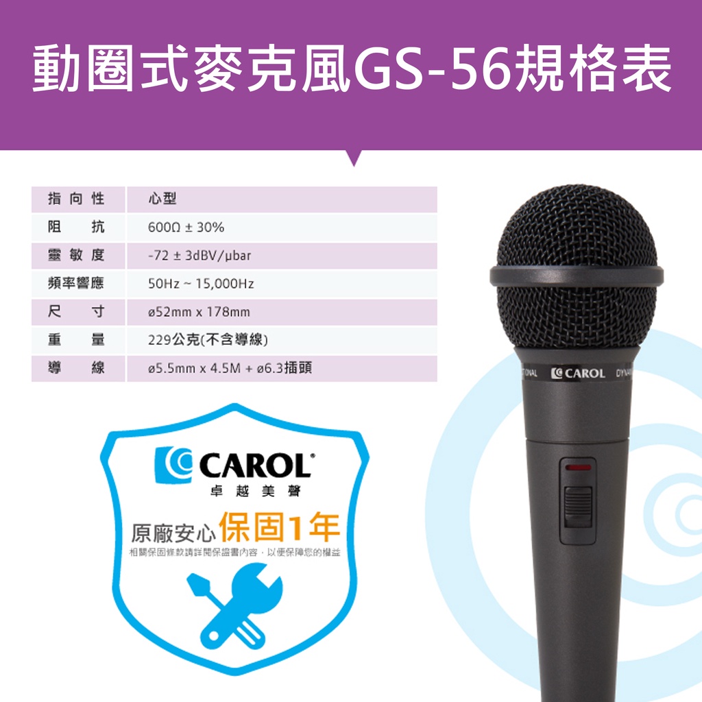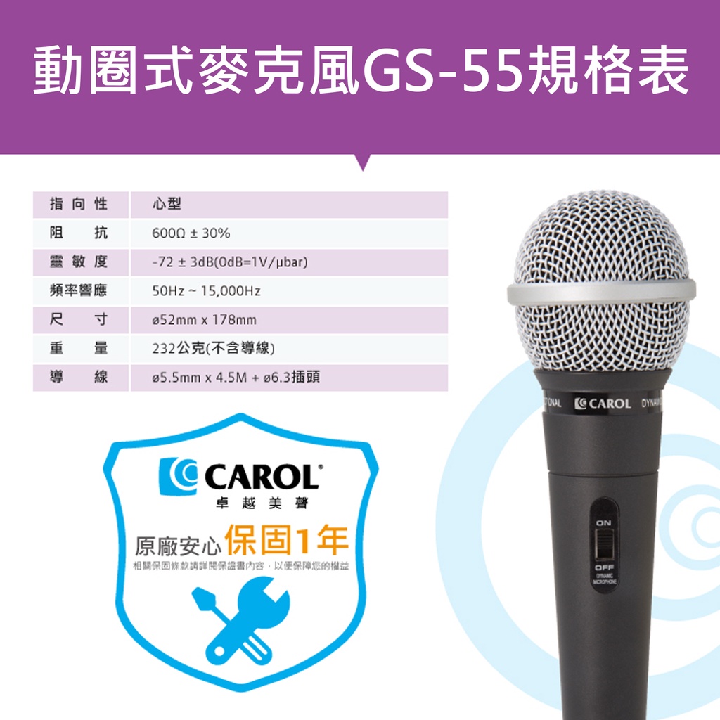 CAROL K歌/教學兩用麥克風 銀色(GS-55) 黑色(GS-56) 6.3單音頭 演講 教學 會議 舞台 主持