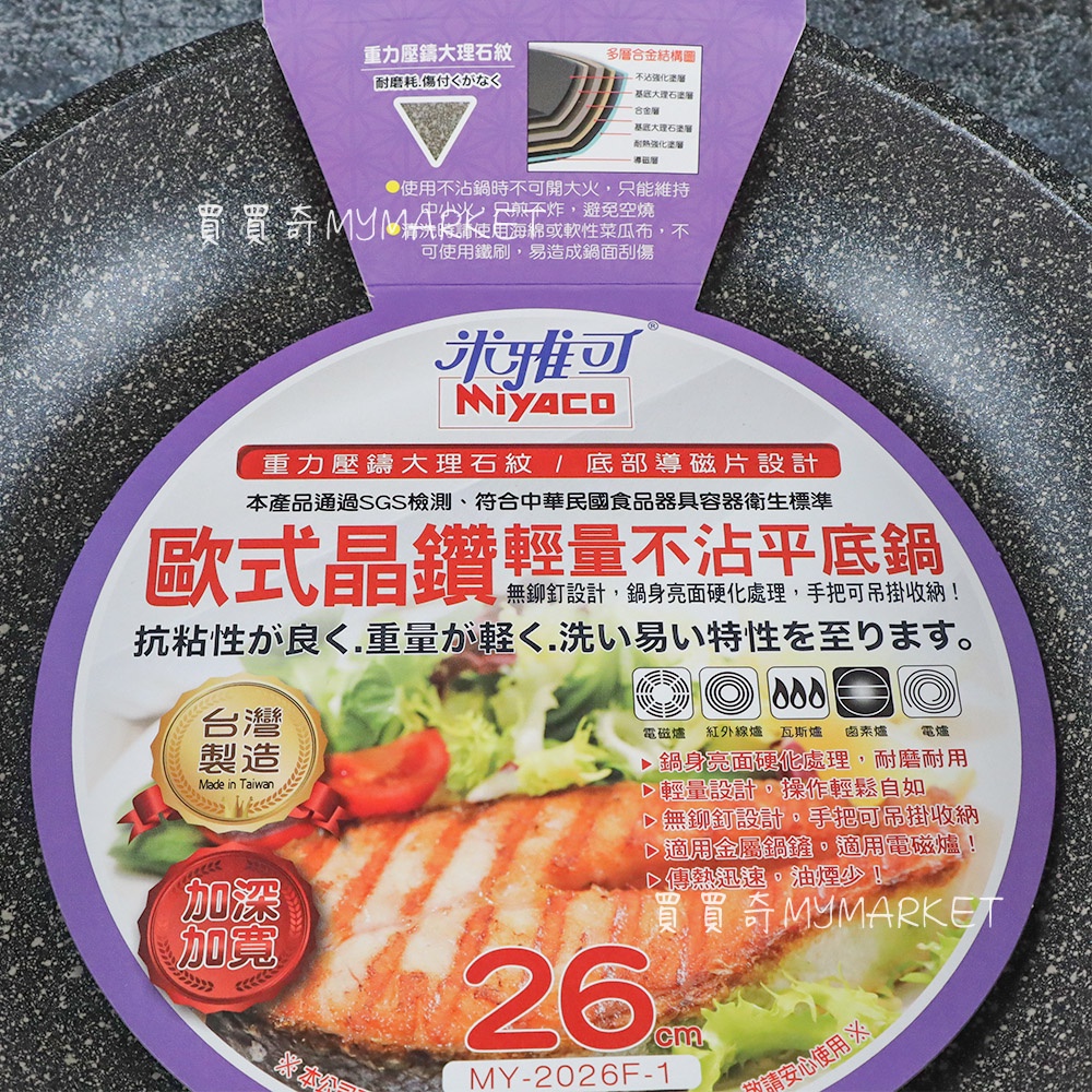 🌟台灣製🌟平底鍋 平煎鍋 煎鍋 不沾平底鍋 單柄鍋 深平鍋 米雅可 歐式晶鑽 26/28/30/33cm 可電磁爐可鐵鏟