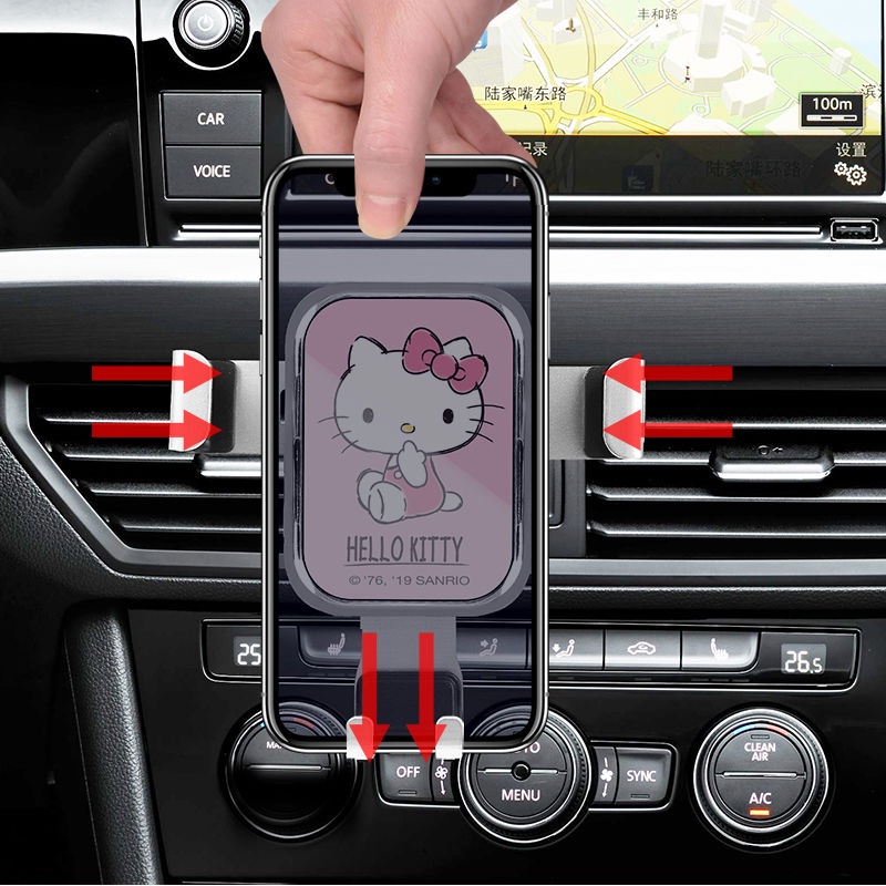 hello Kitty 車載手機支架汽車出風口重力手機架多功能車用卡通導航支架