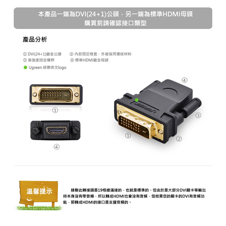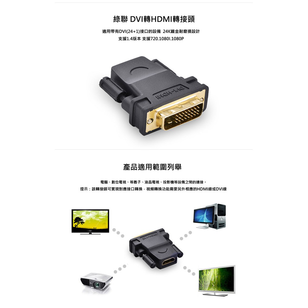 【綠聯】DVI-D(24+1)轉HDMI 轉接頭 現貨 隔日到貨