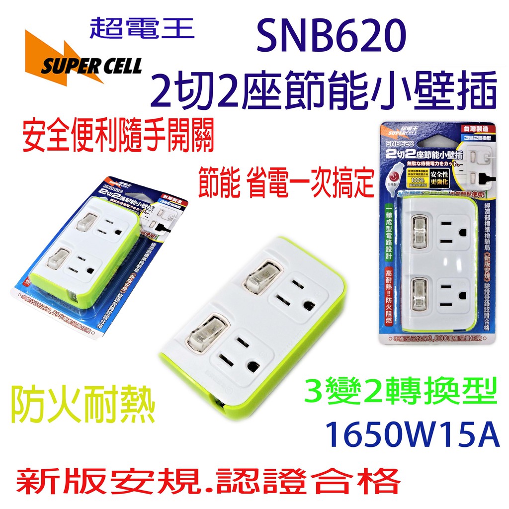 超電王2切2座(3轉2)小壁插-620(台灣製造新安規) 開關分接器 壁插 分接器 插頭 插座