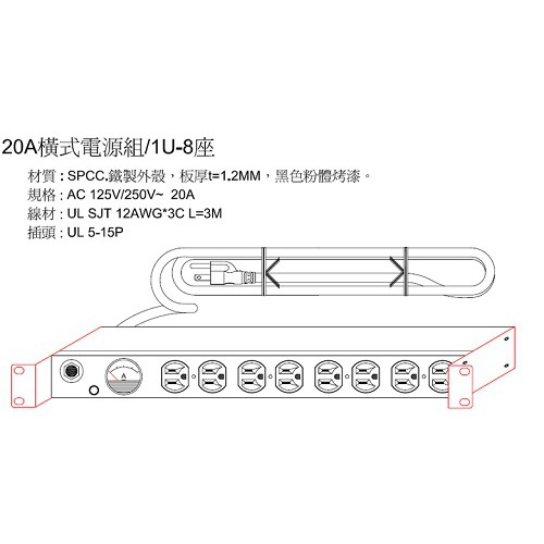 8孔20安培 指針電錶 機架型排插 (SPMA-2012-08)SUNBOX