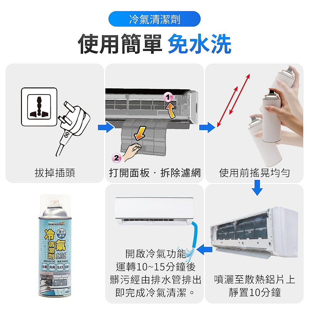 《全》台灣製 耐久美冷氣清潔劑 450ml 清洗劑 新科技 水刀式 免水洗 (銀離子 消臭)