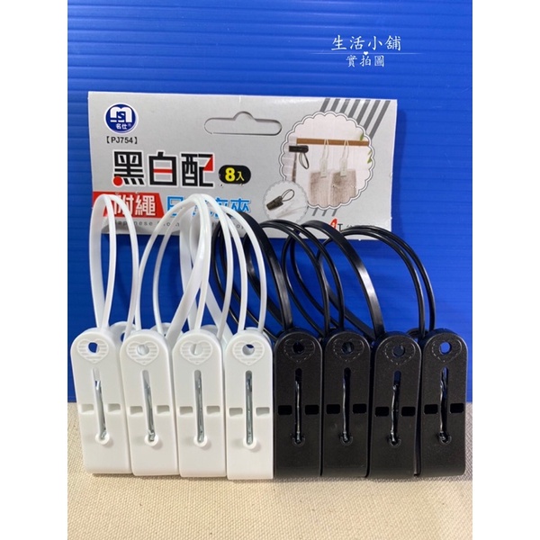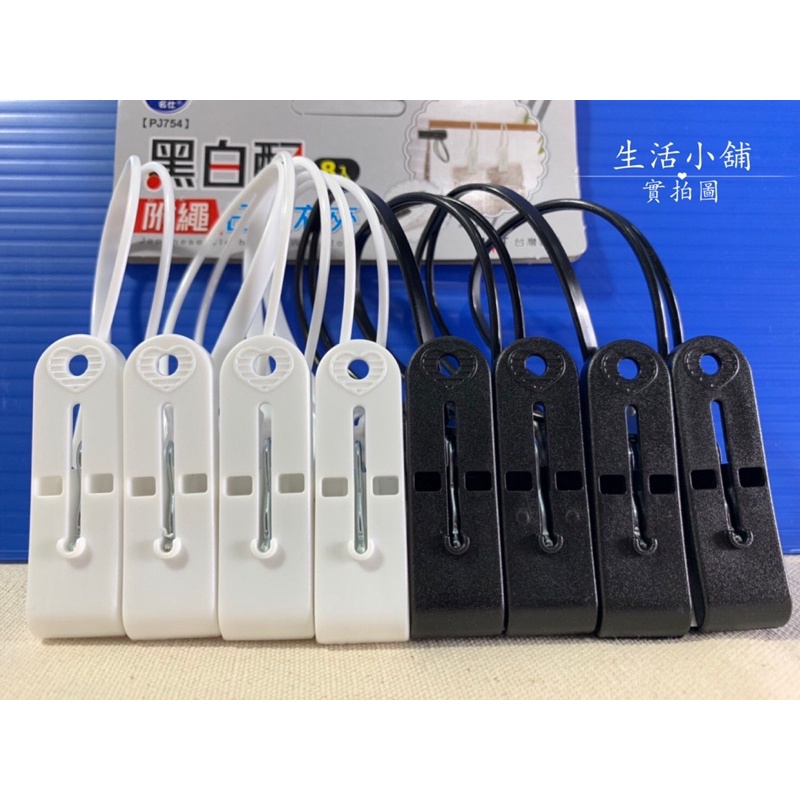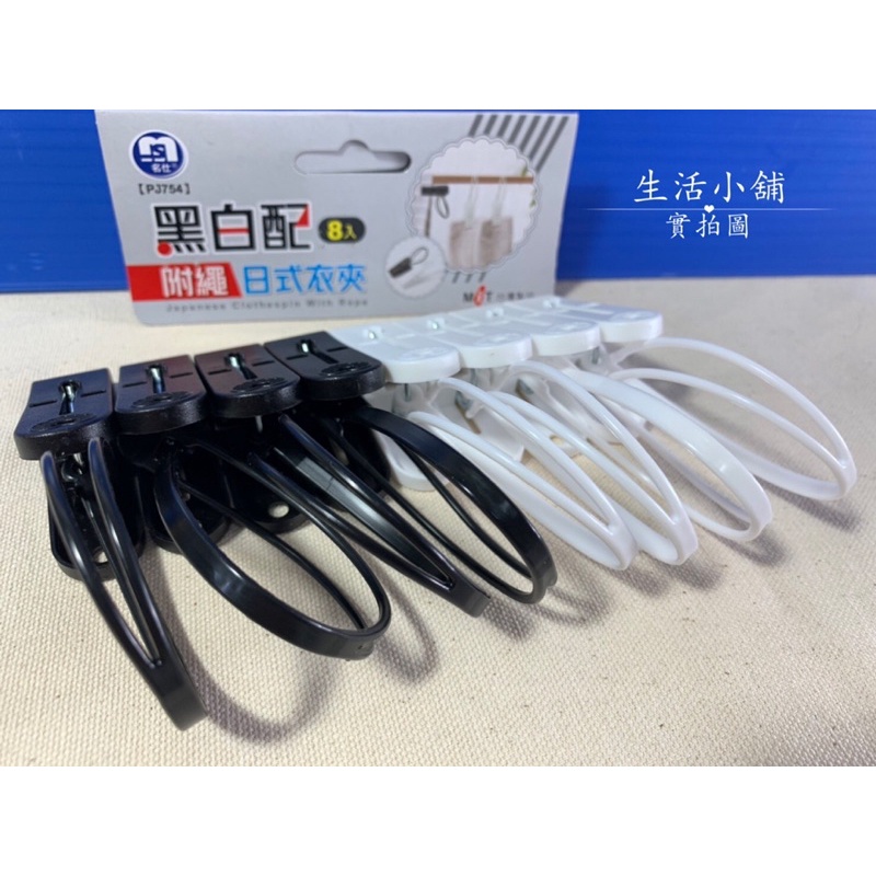 現貨 台灣製 8入 黑白配 附繩 日式衣夾 曬衣夾 襪夾 塑膠衣夾 夾子 衣物夾 塑膠夾子 附繩衣夾