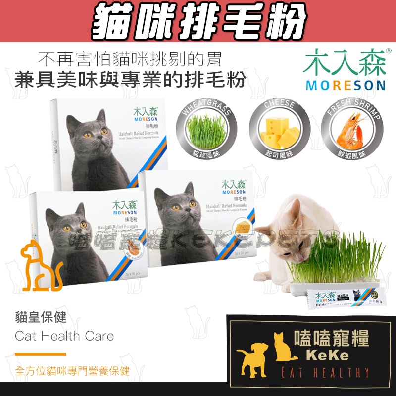 【嗑嗑寵糧】MORESON木入森-排毛粉💚三種口味(15包、30包/盒)寵物保健 寵物排毛粉 貓保健 鮮蝦排毛粉