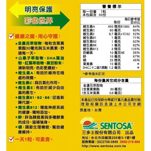 (不剪條碼、完整包裝.電子發票.效期2027年10月)三多素食金盞花葉黃素50粒.現貨