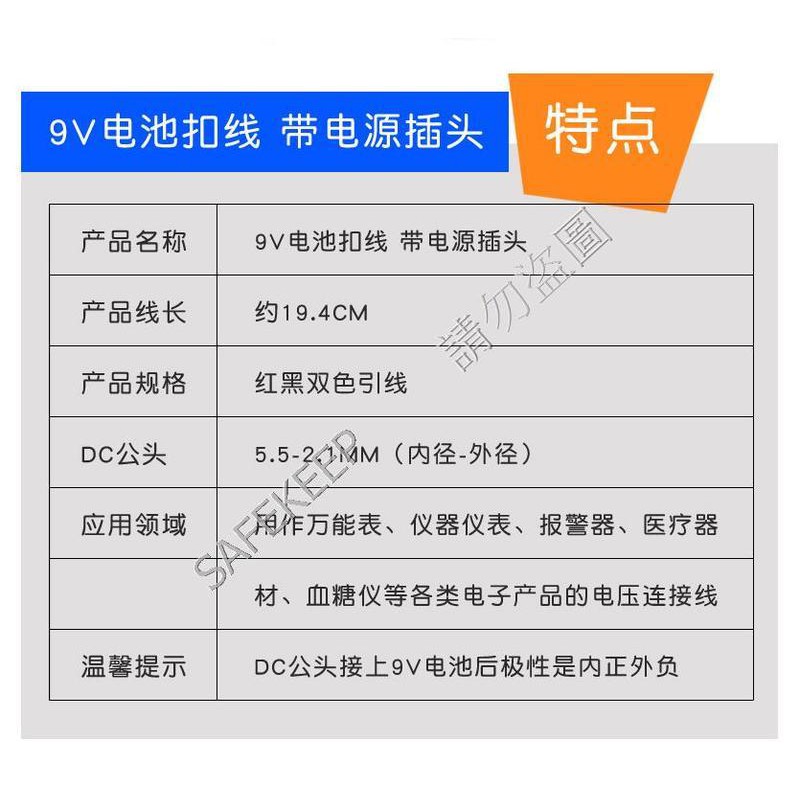 9V電池線 接頭 帶線 DC 5.5*2.1mm 快速 DC 接頭 電源插頭 方型電池