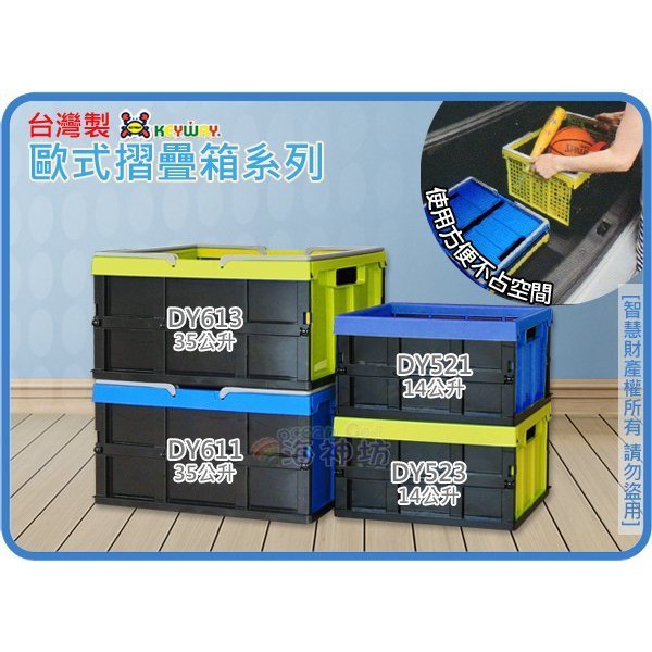 =海神坊=台灣製 KEYWAY DY523 中歐式摺疊箱 綠色 整理箱 置物箱 收納箱 折疊箱14L 6入1050元免運
