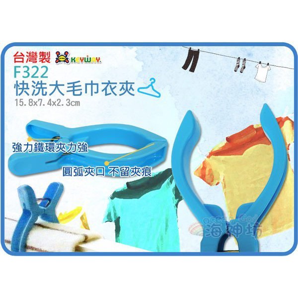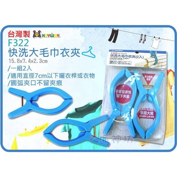 =海神坊=台灣製 KEYWAY F322 快洗大毛巾衣夾強化彈簧 夾度70mm 咬合不易脫落2pcs 24入1150免運