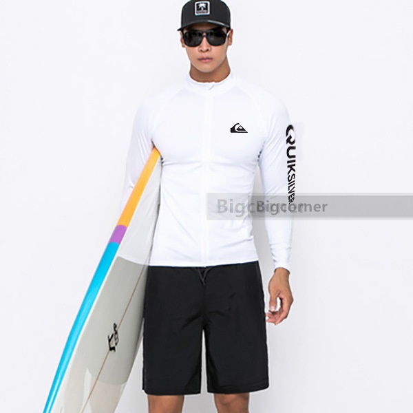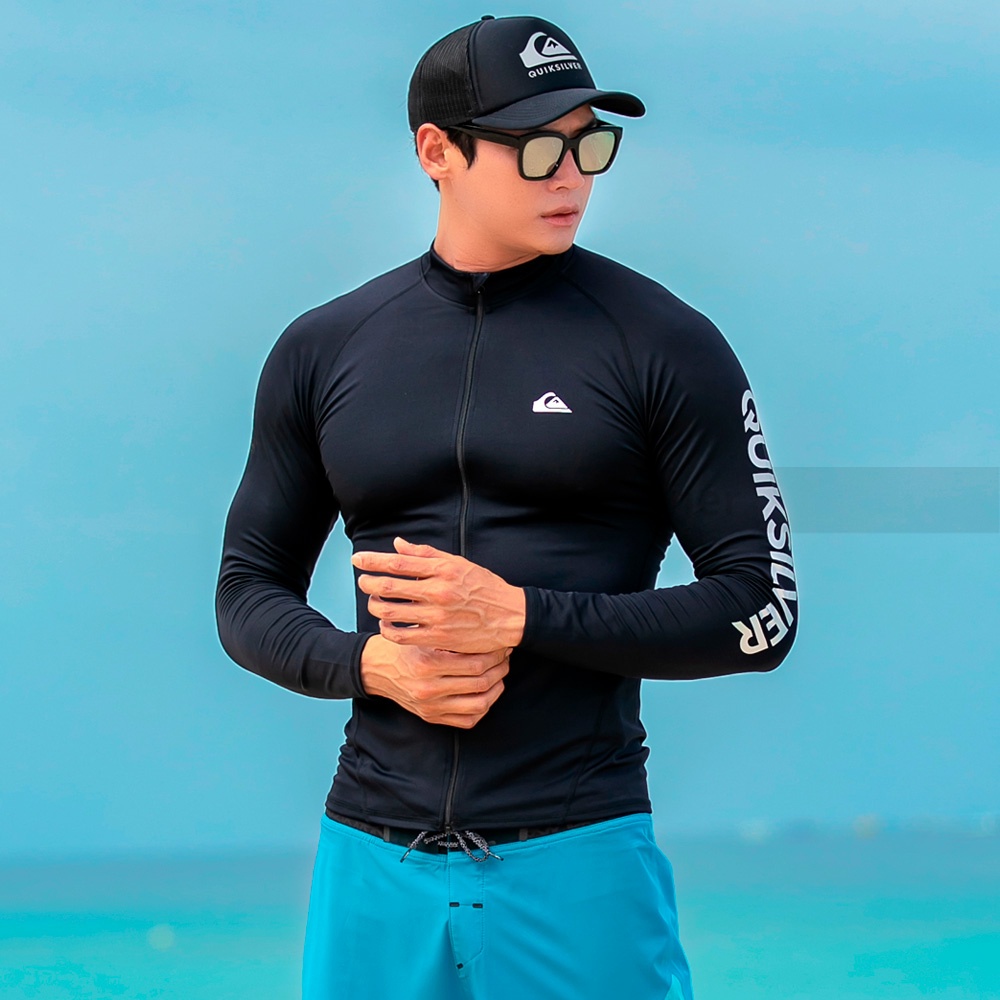 A7(非短褲)男士泳裝長袖防曬衣 4 向彈力皮疹防護貼身衝浪襯衫拉鍊入口潛水衣