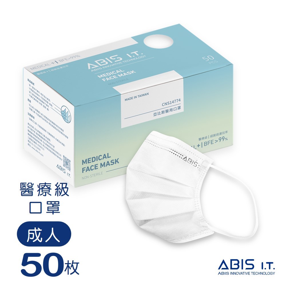 ABIS醫用口罩【成人常規|小臉|大童|小童】台灣製 MD雙鋼印 素色口罩-天使白 (50入盒裝)
