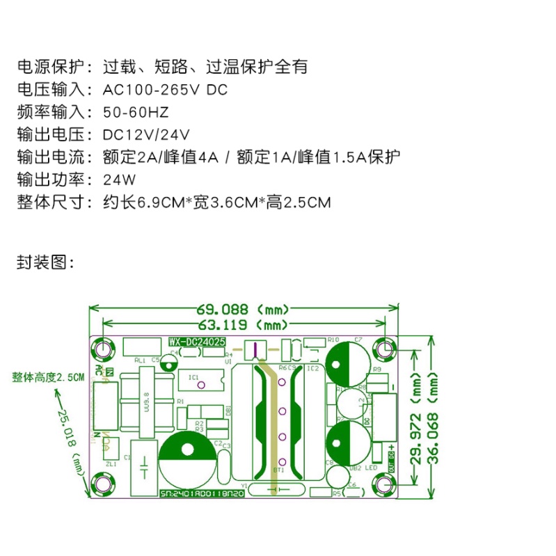 AC-DC電源模塊12V2A開關電源板 模塊 裸板 12V24W25W 隔離電源