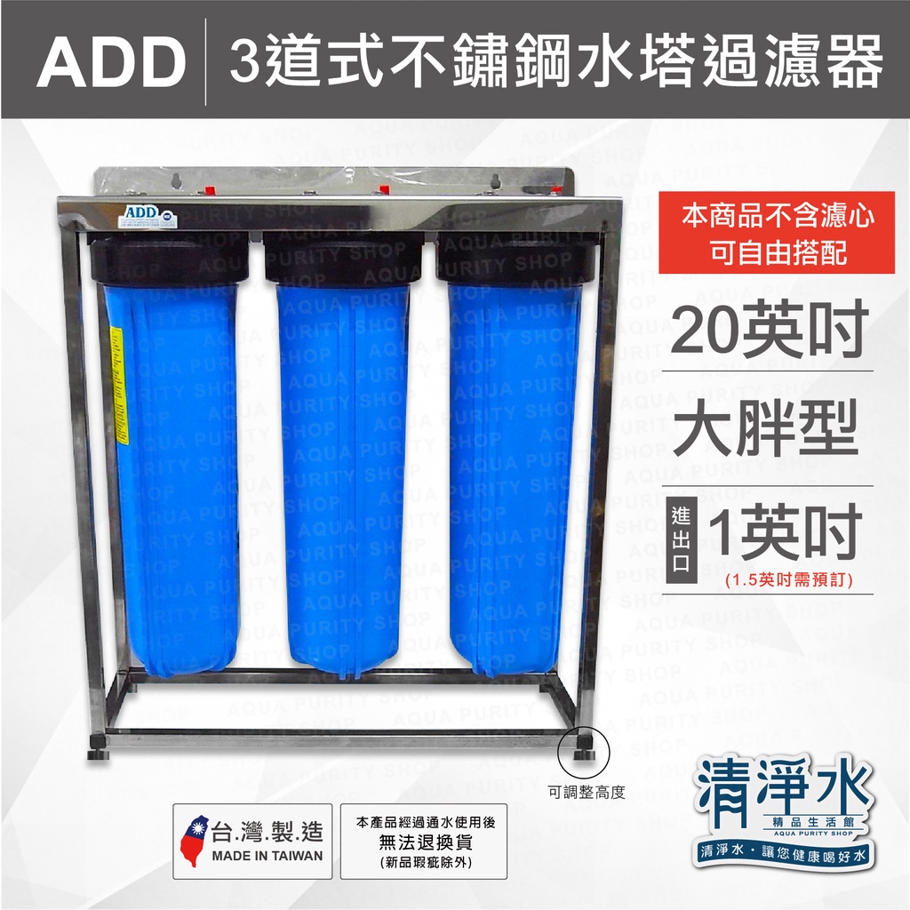 ADD不鏽鋼水塔過濾器、20英吋腳架、大胖3道式、1英吋規格【清淨水精品生活館】