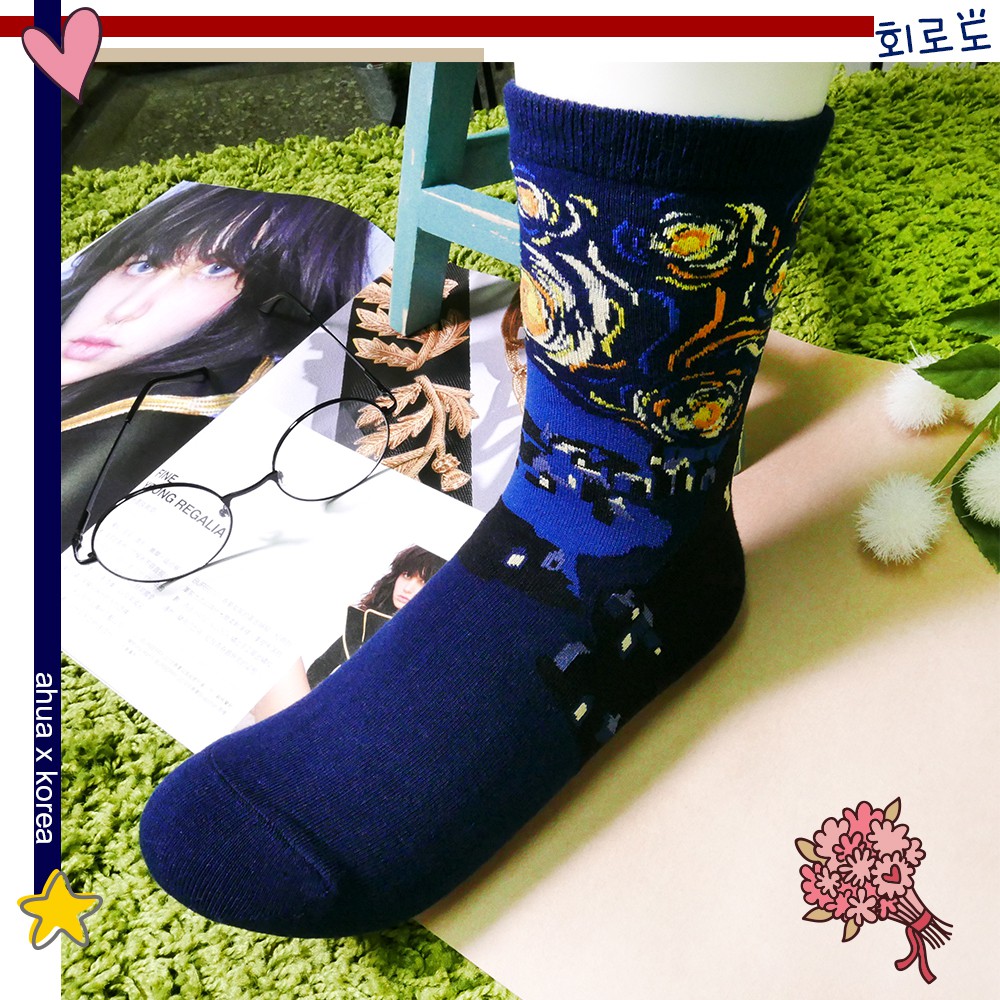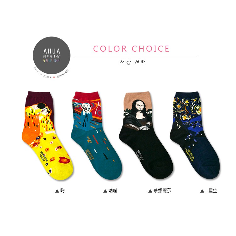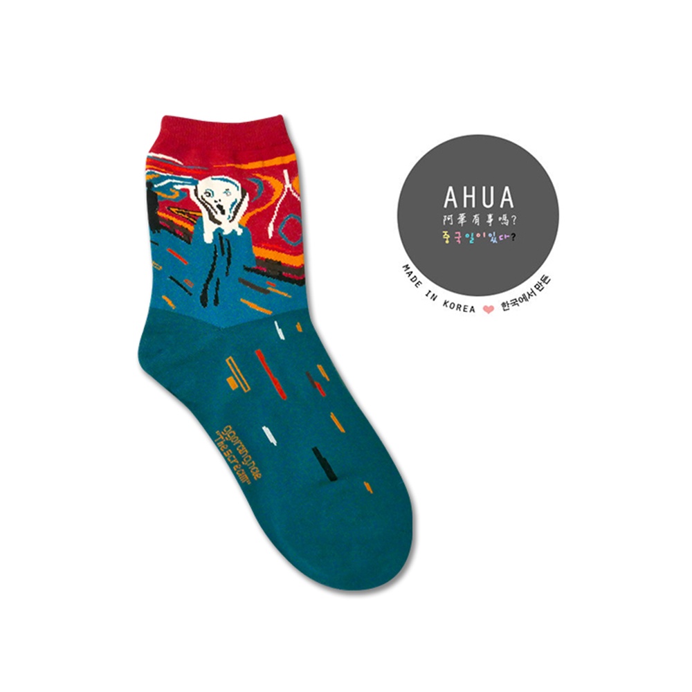 AHUA阿華有事嗎 韓國襪子 名畫系列圖案中筒襪 K0064 正韓熱賣少女襪 韓妞必備長襪 百搭純棉襪 韓系穿搭