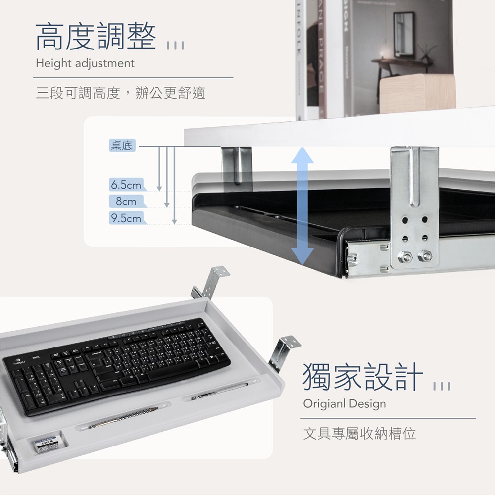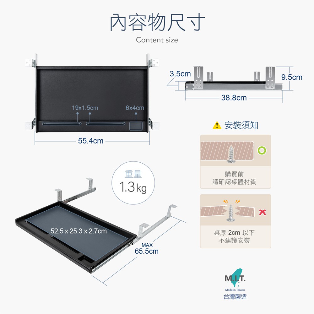 AIDATA 愛得他 標準型鑽孔式桌下鍵盤架/兩色可選 KB003