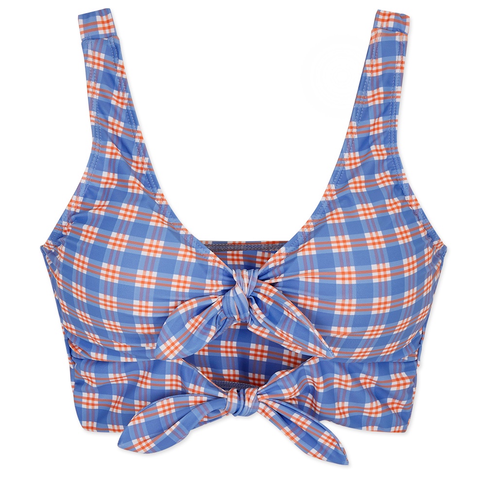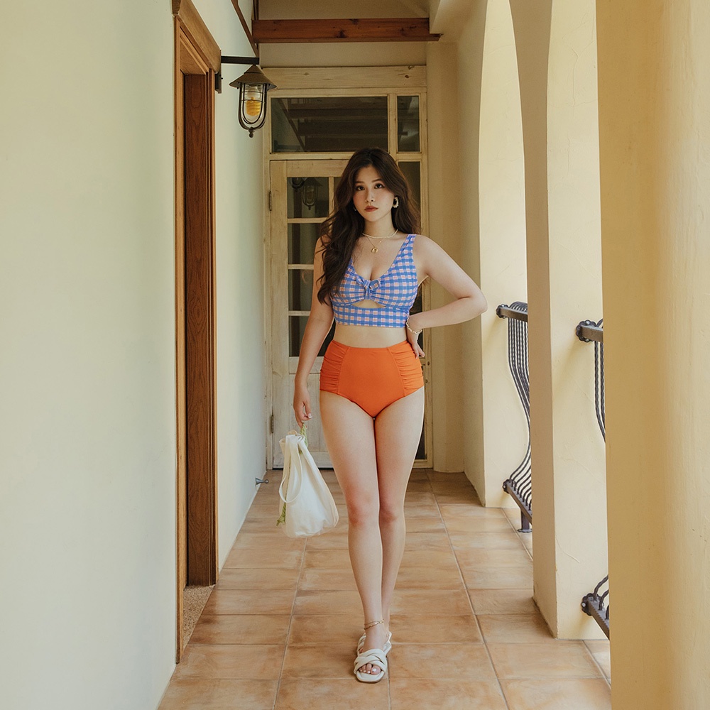 AIR SPACE 【TIFFANY聯名】2WAY甜美雙綁爆乳比基尼(藍橘格/綠藍格) 泳裝 性感 溫泉 泡湯 辣妹