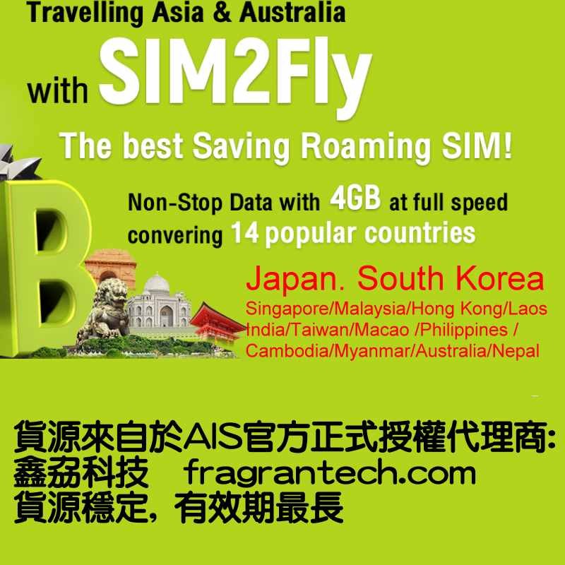 AIS31國sim2fly8日 亞洲多國 15天12GB 日本 印度 阿聯酋 土耳其 尼泊爾 關島...