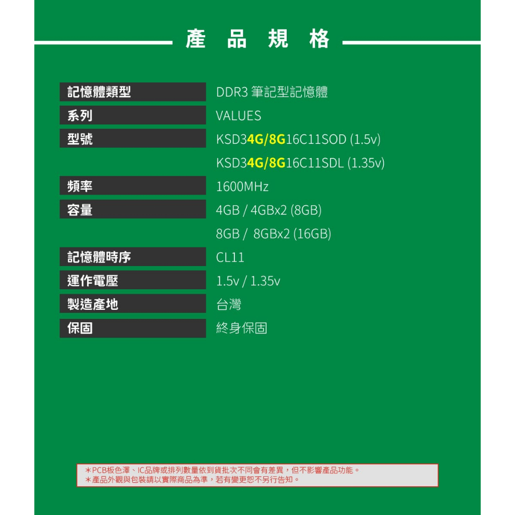 AITC 艾格 Value S DDR3/3L 8GB 1600 SODIMM 筆記型記憶體 / NAS可用