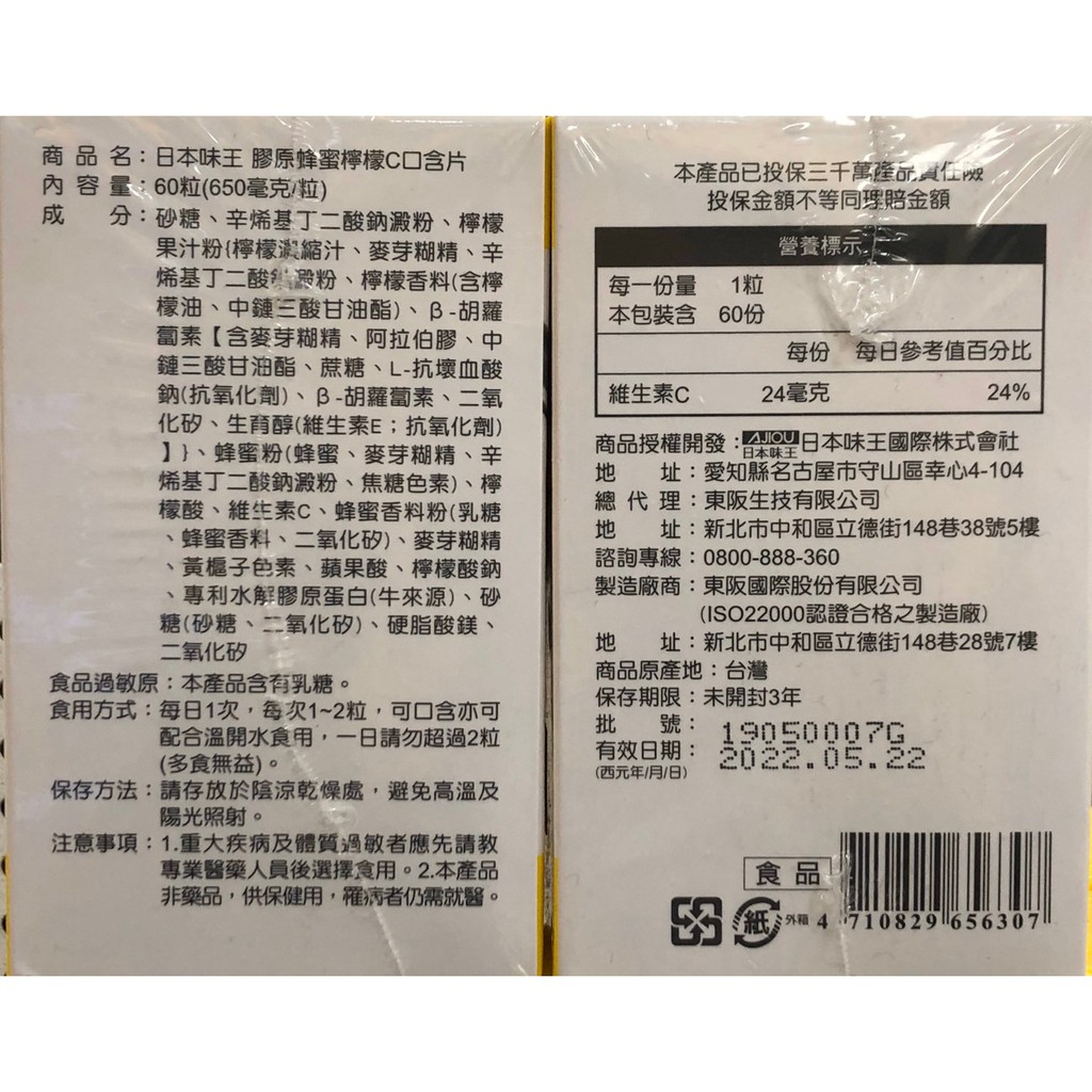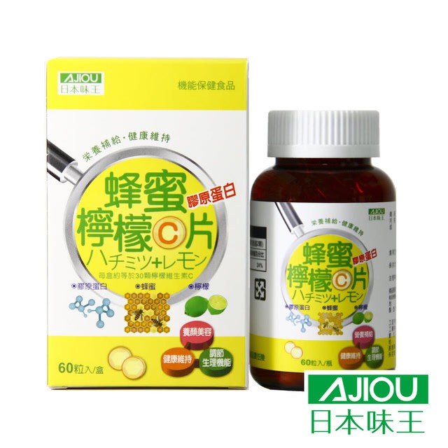 AJIOU 日本味王 膠原蜂蜜檸檬C口含片 (60粒/罐)【杏一】