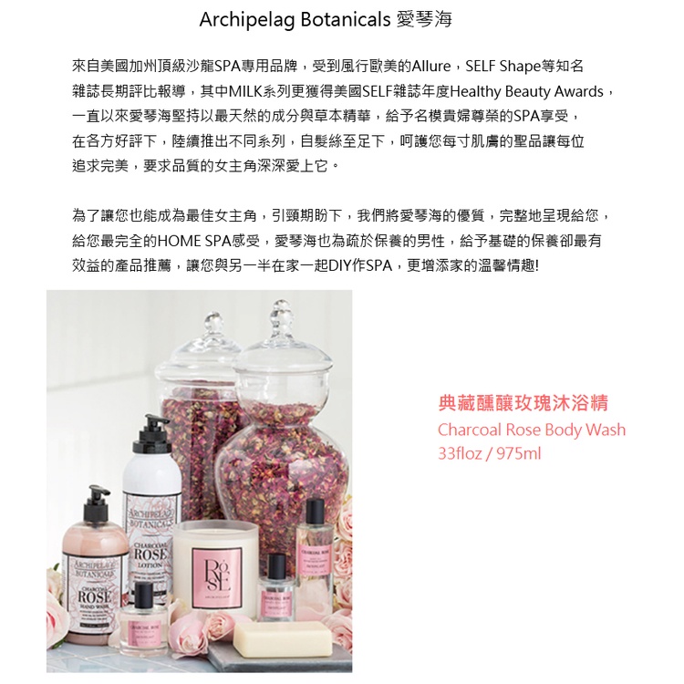 ARCHIPELAGO愛琴海 典藏勳釀玫瑰保濕沐浴精 沐浴乳975ml