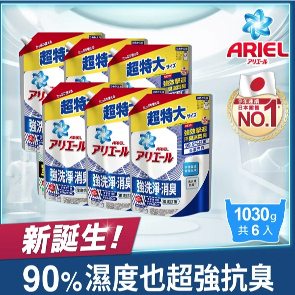 ARIEL超濃縮抗菌抗臭洗衣精補充包1030gx6(抗菌去漬型/室內晾衣型)