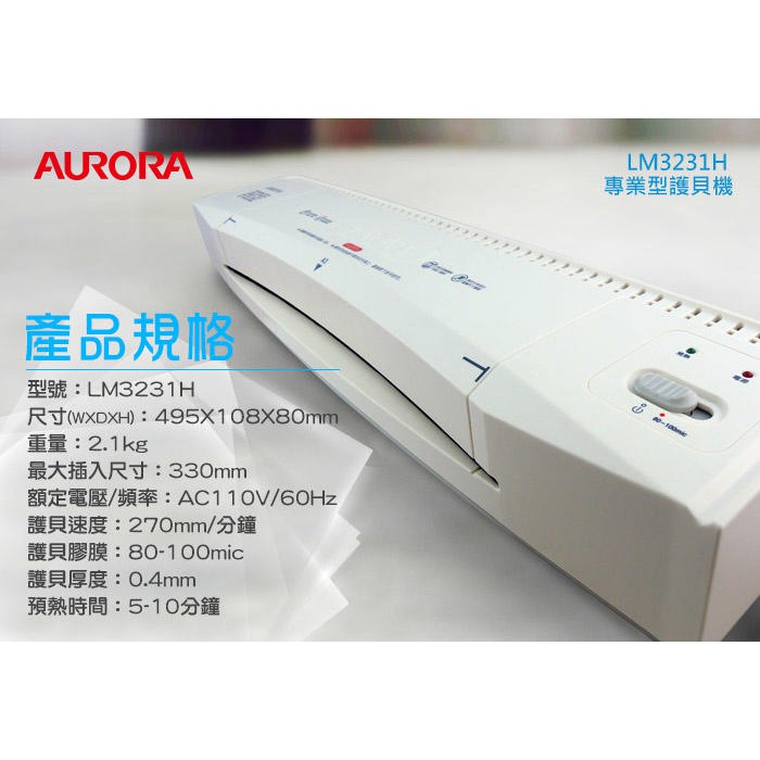 AURORA 震旦 A3 專業型 護貝機 白色 LM3231H LM3231 護貝