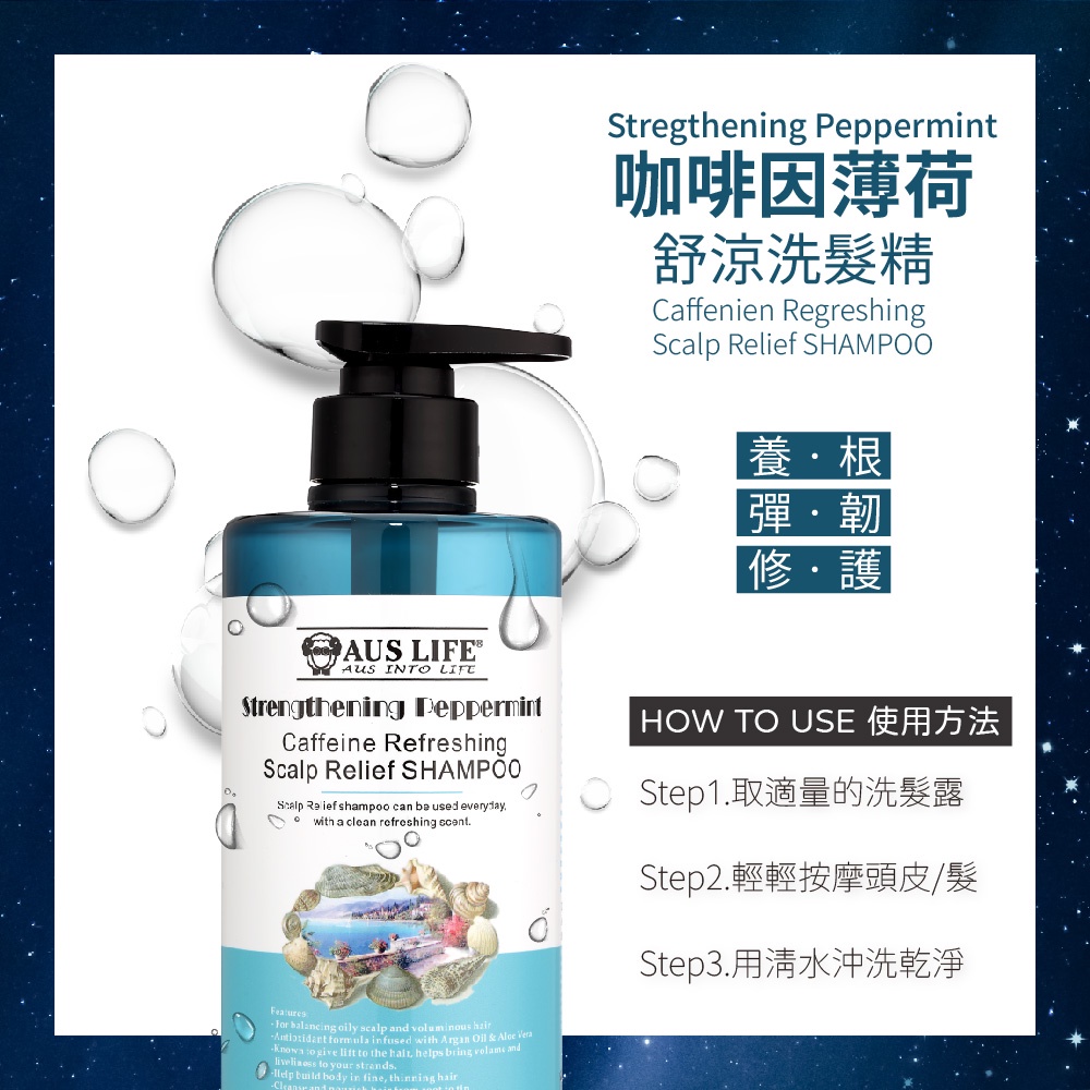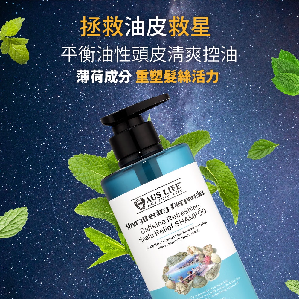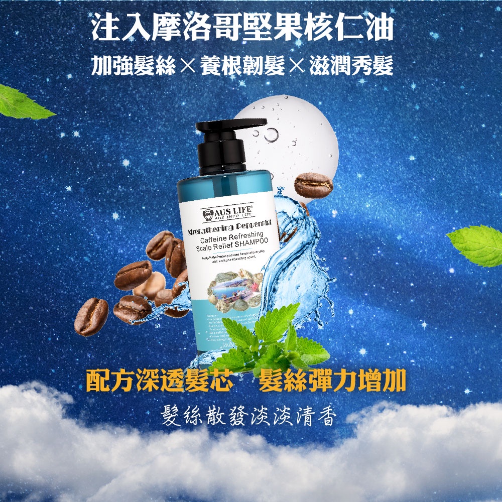 AUS LIFE 澳思萊 咖啡因健髮洗髮精(頭皮養護專用)550ml (咖啡因薄荷舒涼洗髮精)
