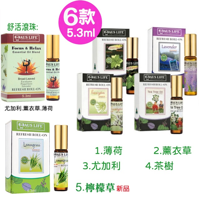 AUSLIFE 澳思萊 滾珠精油 舒活 茶樹 薄荷 尤加利 薰衣草 檸檬草 5.3ml 精油 檸檬香茅